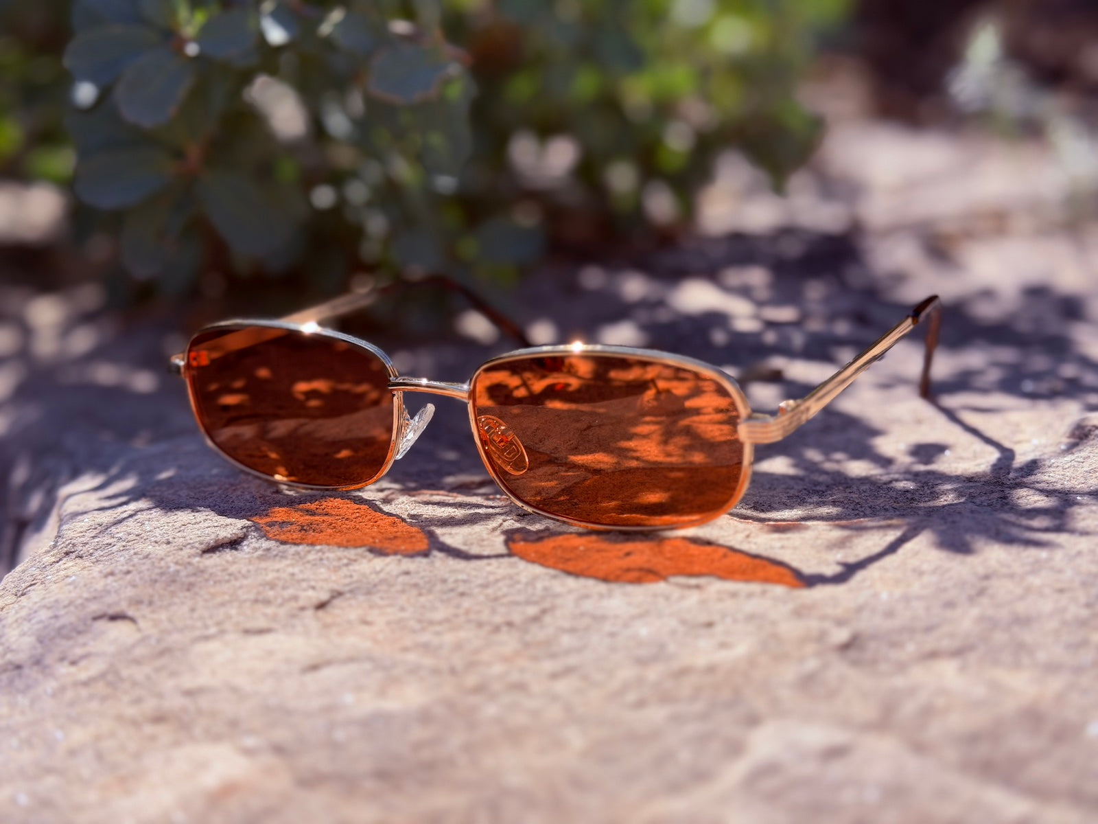 The GOLDEN EMBERS channel the desert’s heat — sleek gold metal wrapped around molten orange lenses that burn like twilight fire. A balance of retro edge and radiant glow, made for those who wander with light in their eyes and sparks at their back.