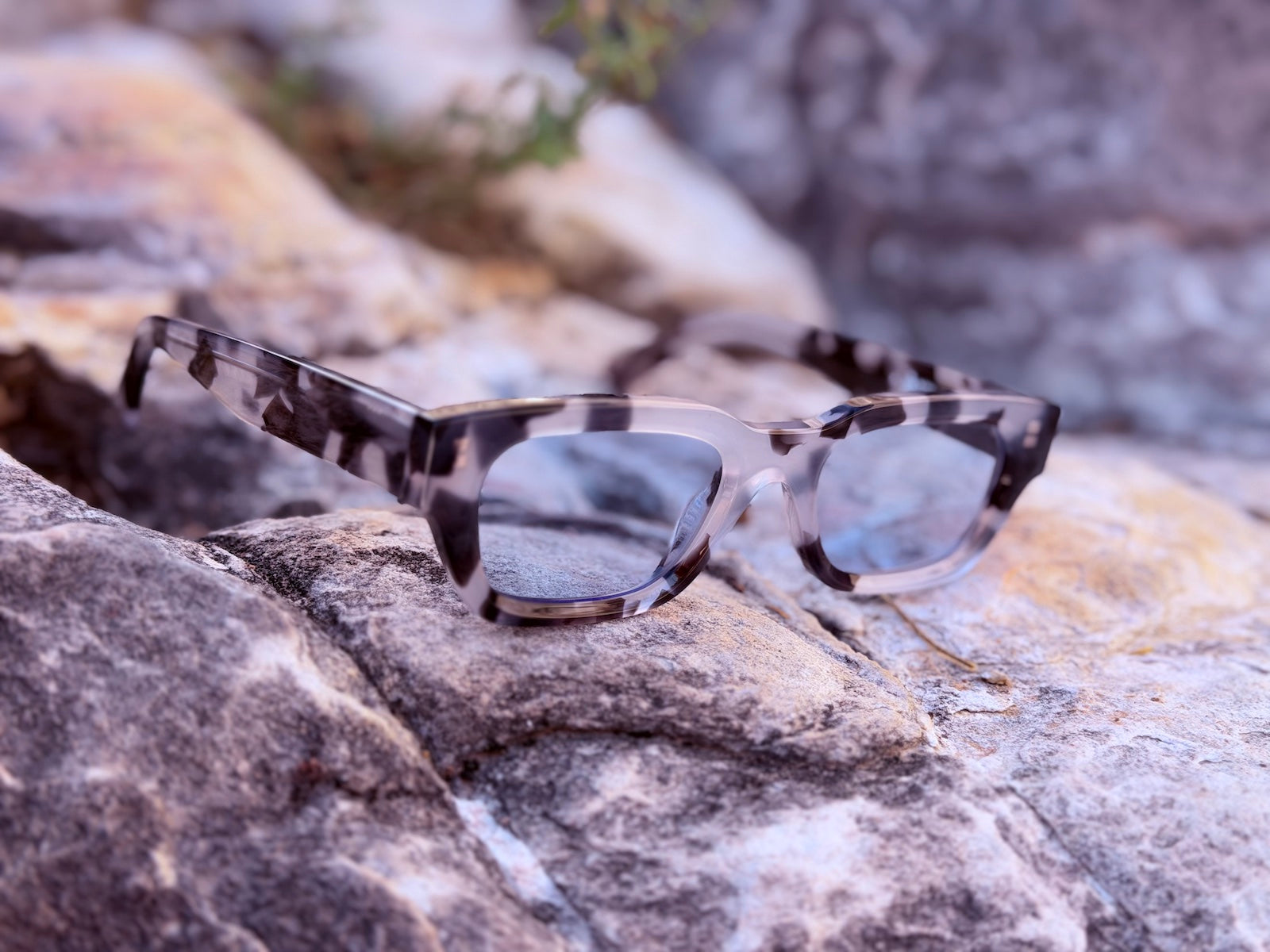 The STONECAST GEODES bring a bold slim-rectangle silhouette with a marbled stone-gray frame and soft translucent accents. Like geodes cracked open under desert sun, these shades radiate grounded, mystical energy.