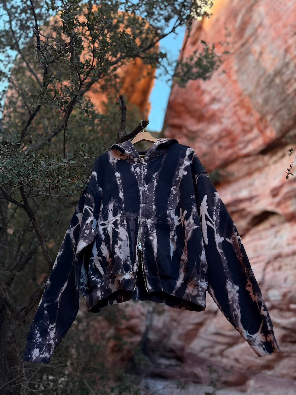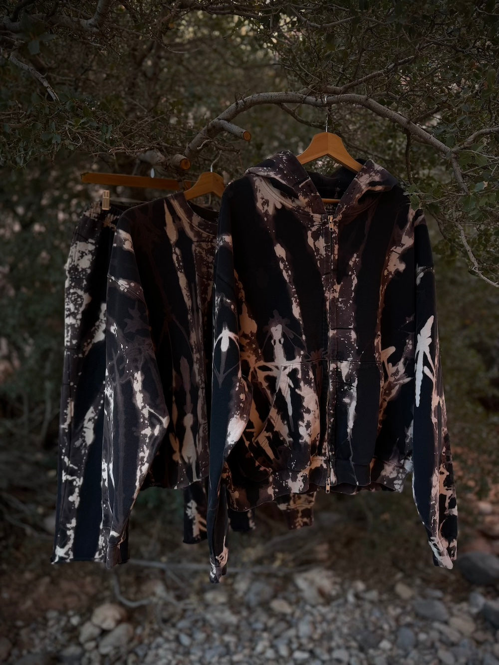 Birthed from the depths, hand-dyed to embody duality: darkness embracing illumination.