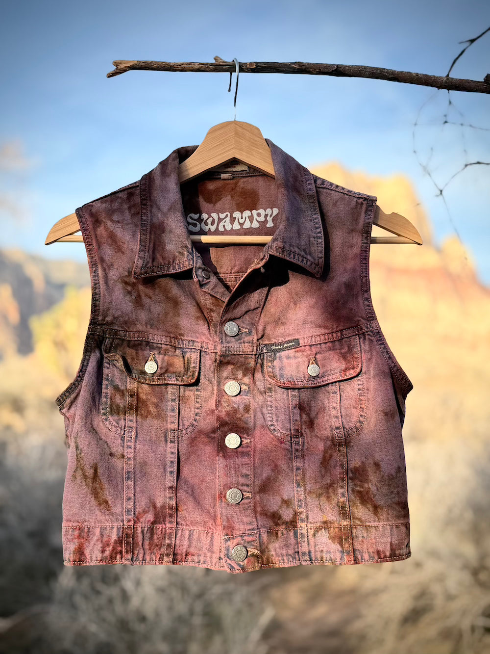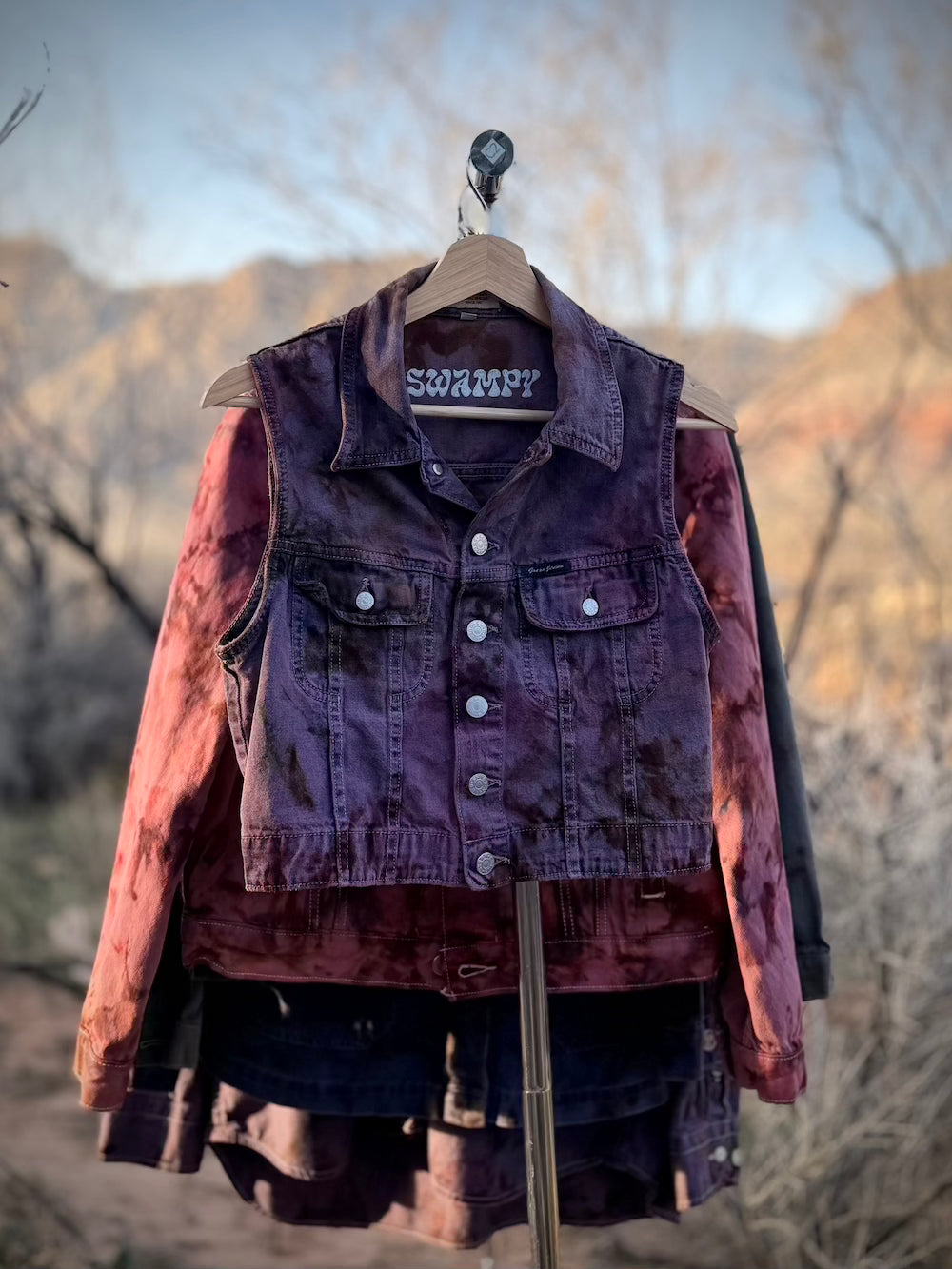 Birthed from previously loved garments and guided through the murk, each piece has been intuitively cleansed & hand-dyed to honor protection, boundaries, and your becoming.